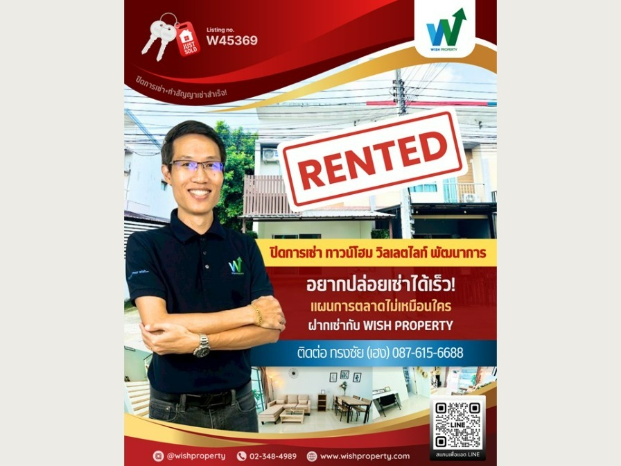 Agent Wish ปิดการเช่าสำเร็จค่ะ!! คุณทรงชัย (เฮง) 087-615-6688