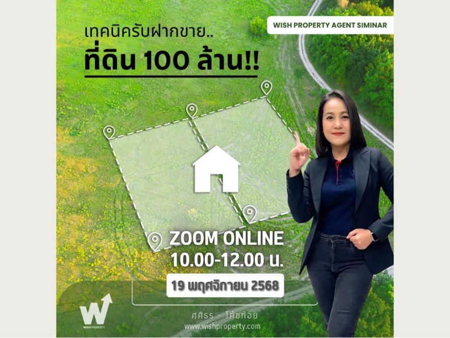 สัมมนา AGENT บ้านมือสอง.com วันพุธ 19 พ.ย 68 โค้ชก้อย แชร์ เทคนิครับ Listing ฝากขายที่ดิน 100 ล้าน ได้ง่ายๆ ทำยังไง