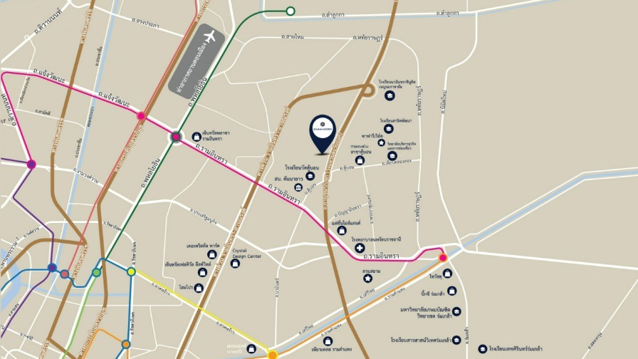 - ใกล้โรงพยาบาลสินเพทย์รามอินทรา, โรงพยาบาลนพรัตนราชธานี และ โรงพยาบาลพญาไทนวมินทร์