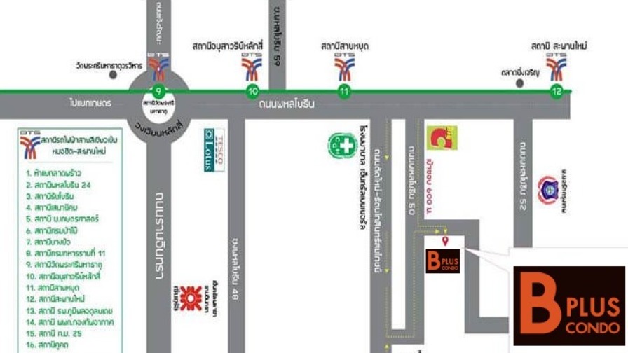 ทำเล โครงการ บีพลัส คอนโด (B Plus Condo) พหลโยธิน 50 ที่ตั้ง ซอยพหลโยธิน 50 แยก 1 (ซอยร่วมมิตรพัฒนา) แขวงคลองถนน เขตสายไหม กรุงเทพฯ การเดินทางด้วยรถไฟฟ้า เพียง 750 เมตร ถึง BTS สถานีสายหยุด (สายสีเขียวเข้ม) นั่งต่อเดียวเข้าสยาม/อโศก